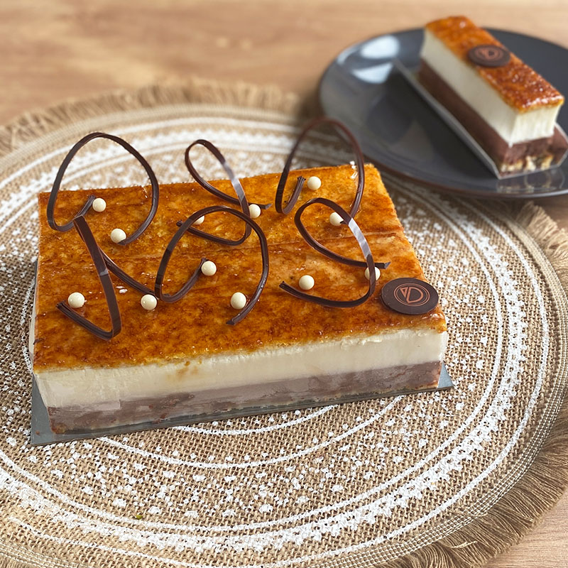 Composition : cake chocolat, cœur moelleux, amandes torréfiées